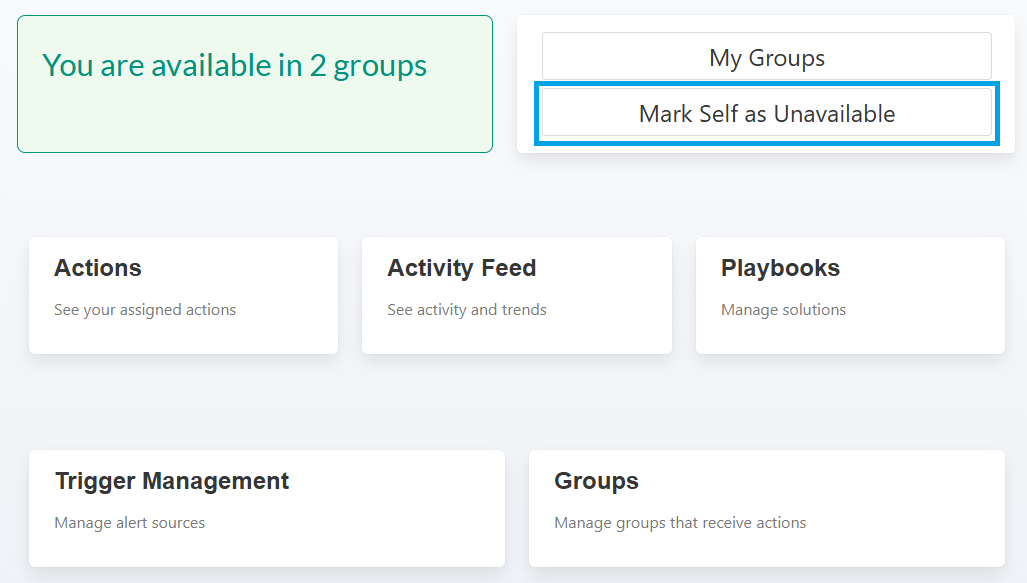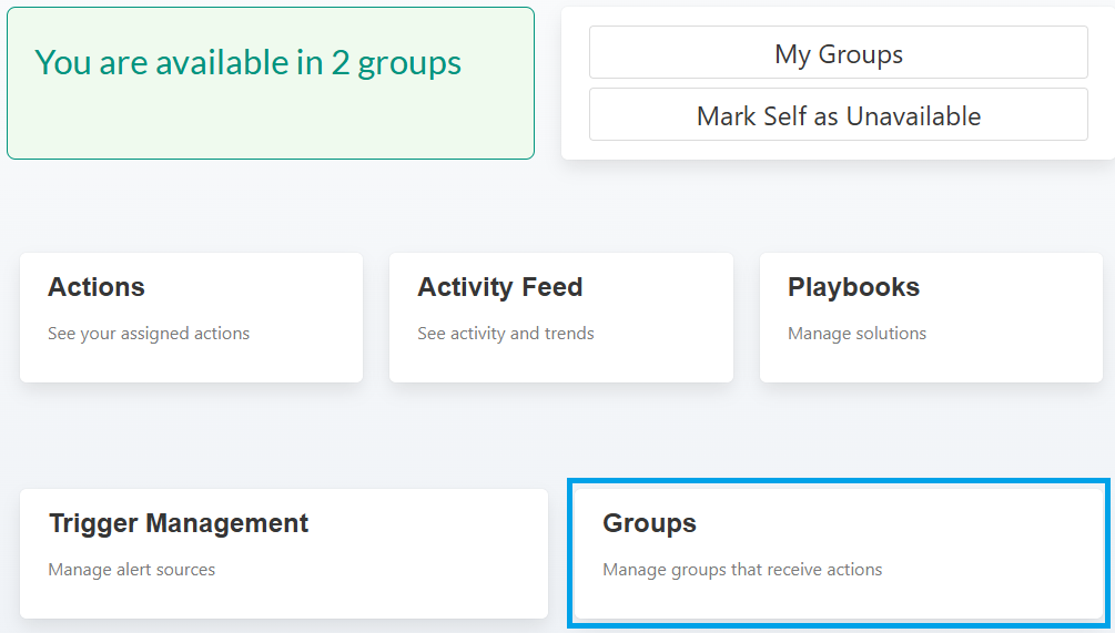 Quick navigation to Groups, Triggers, Playbooks, and Activity Feed