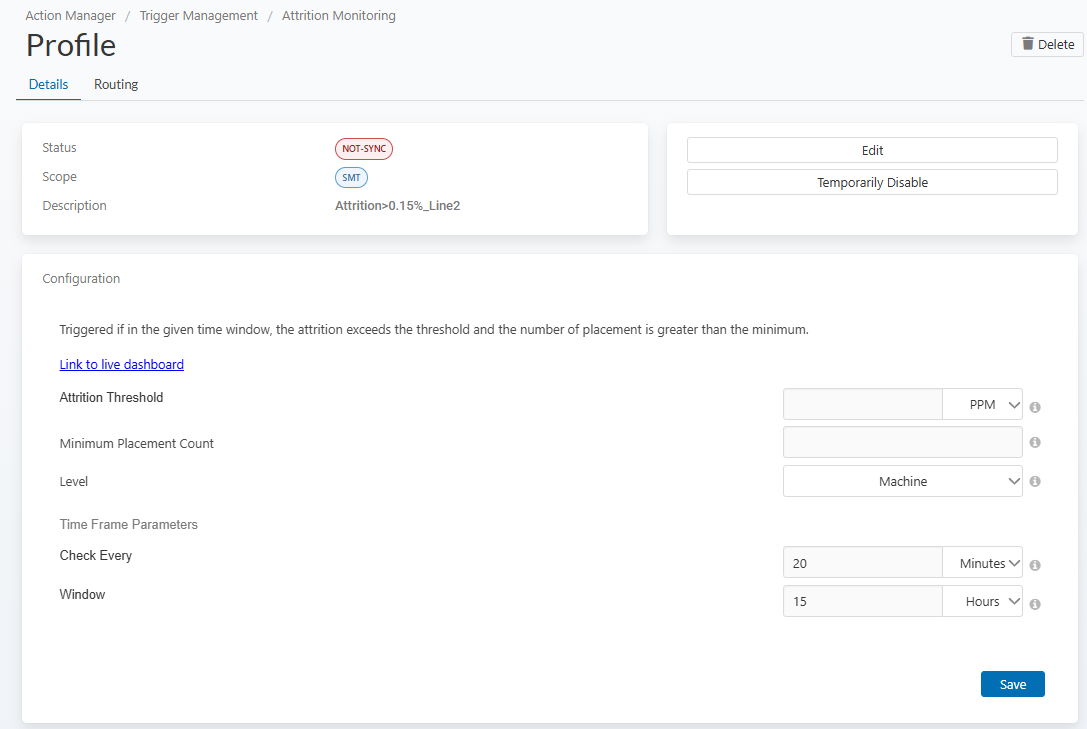 Profile: A configuration of a module defining thresholds, windows, scopes, routing, and escalation.