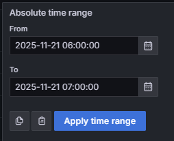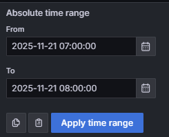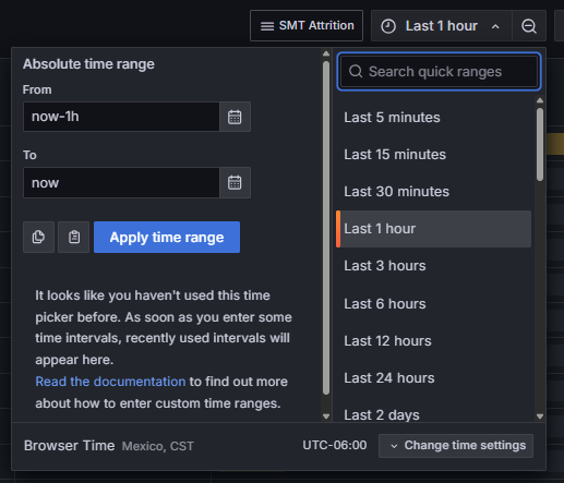 Since this dashboard operates in Grafana, all of the standard filtering capabilities are available: