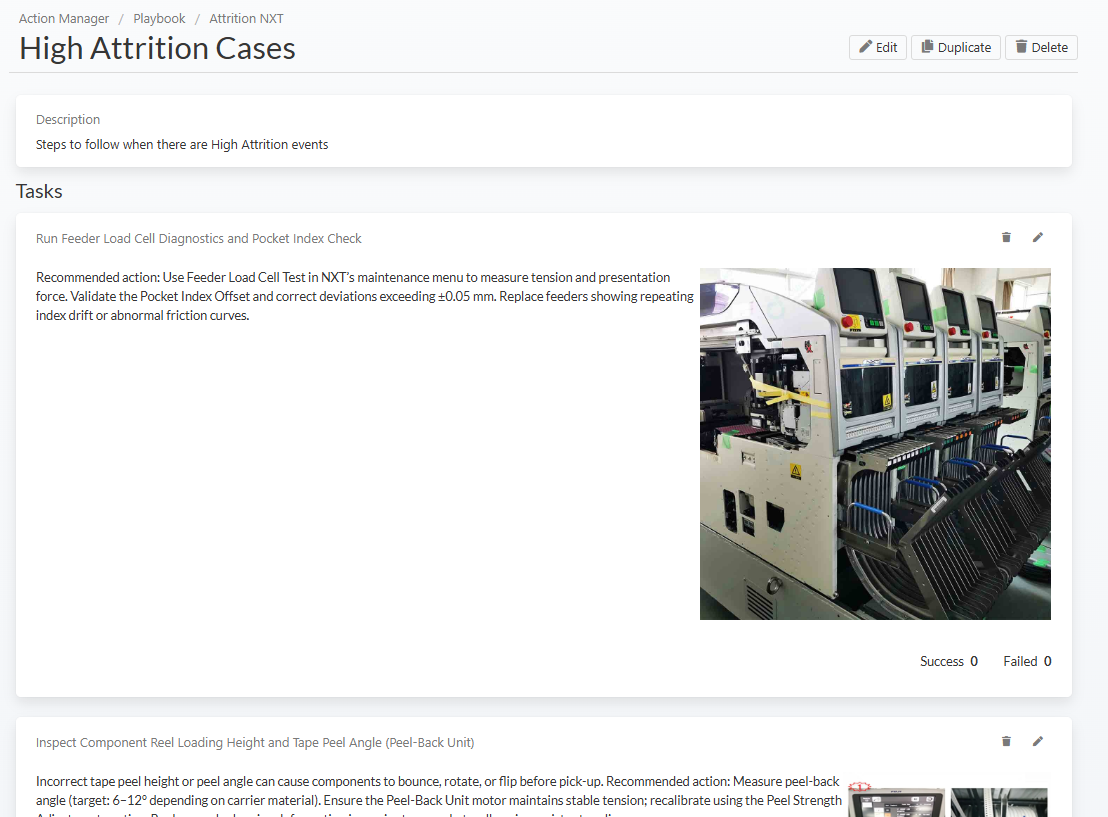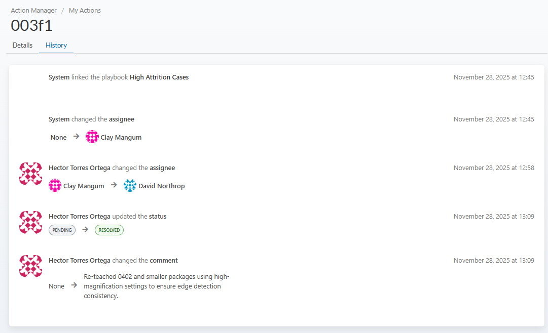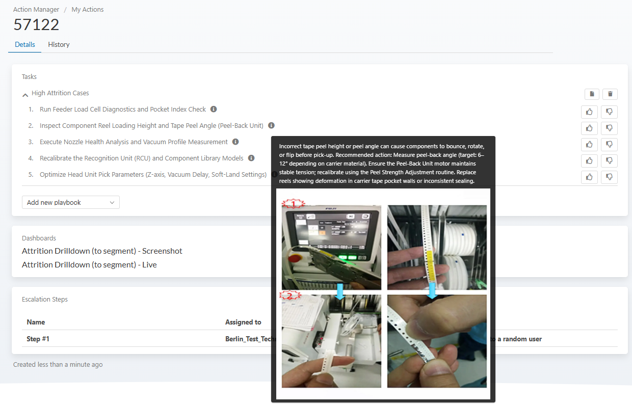 By combining automatic detection, intelligent summaries, and structured playbooks, Action Manager helps factories: