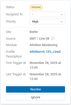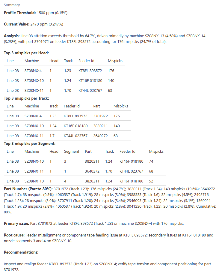 This is one of the most valuable sections for tuning profiles and improving the factory’s alerting strategy.
