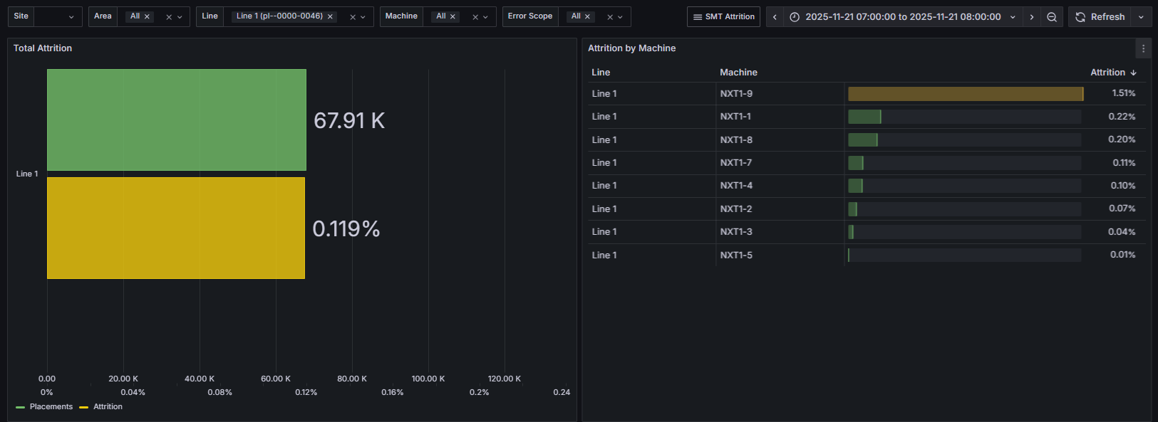 Area: A section of the factory containing multiple lines or machines (e.g., SMT, AOI, Assembly).