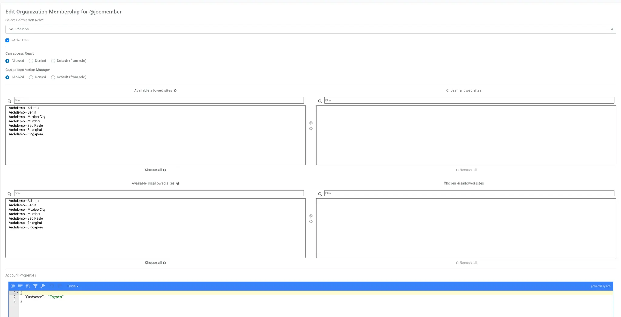 "Customer": "Toyota","Region": "APAC") - Edited in the Admin pages on each user's membership page