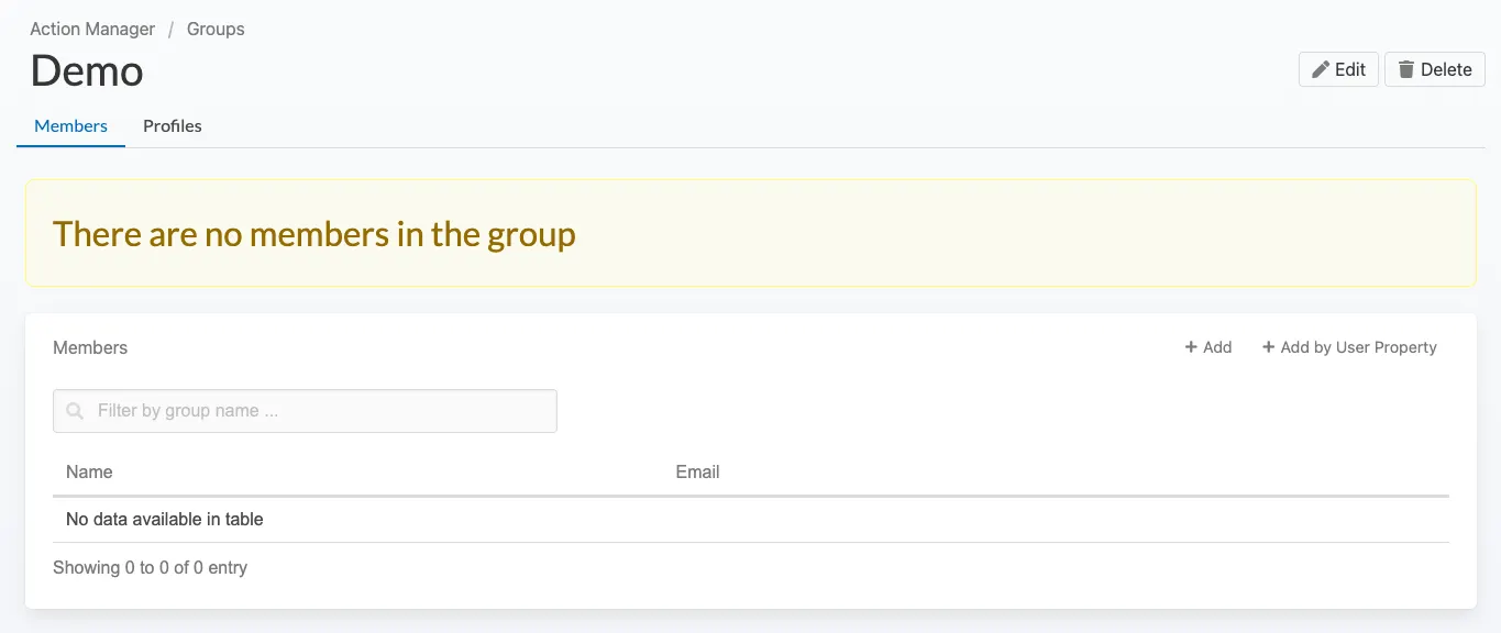 - Navigate to Action Manager → Groups