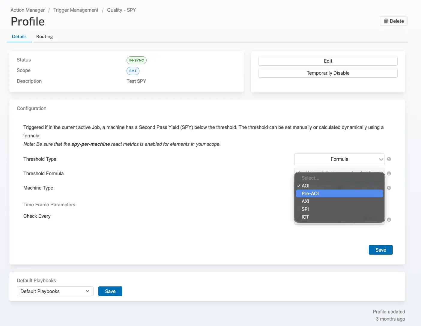 - Use Quality - SPY or Quality - FPY with ICT machine type for standard SPY/FPY alerts on ICT machines